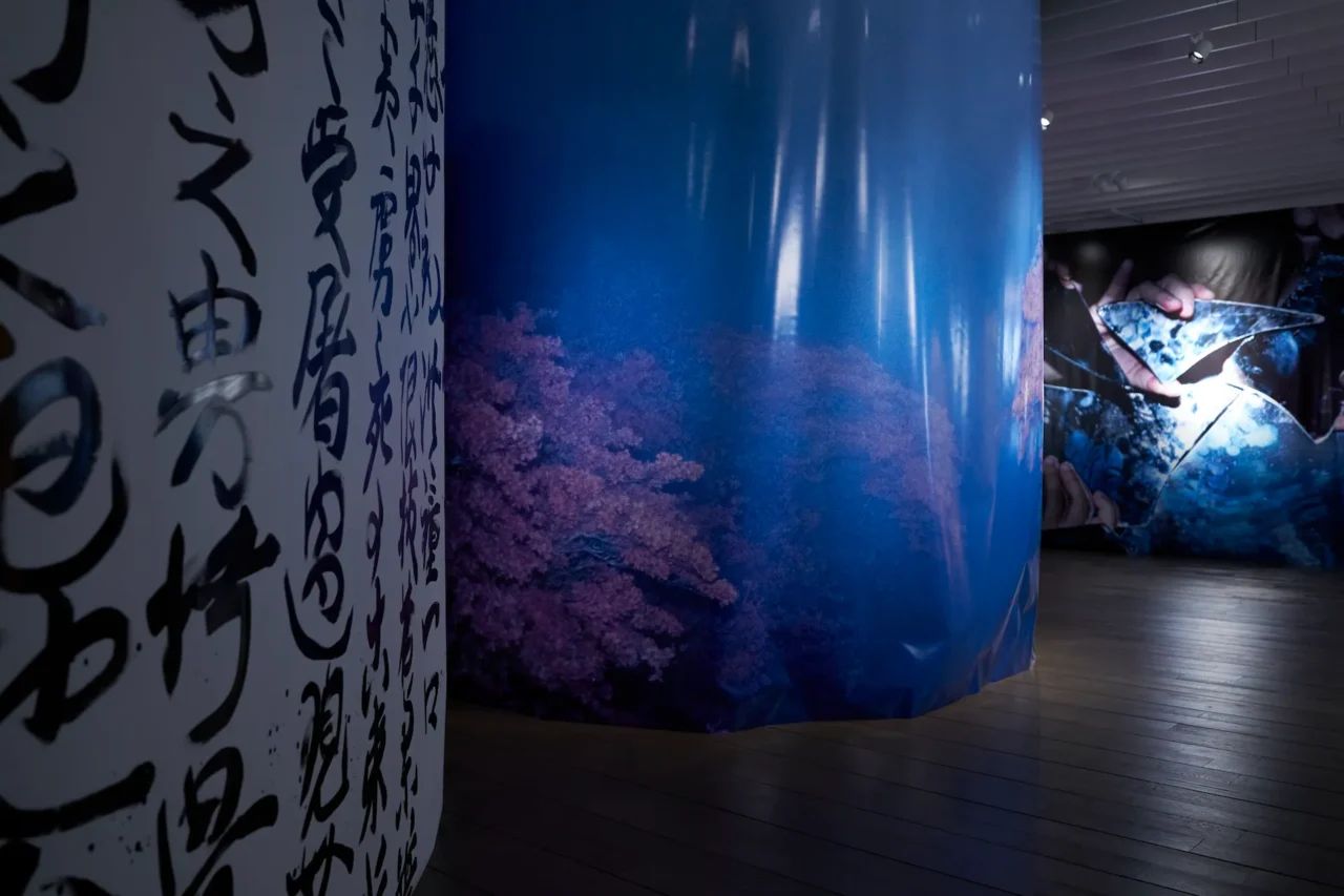 杉原:テーマの重なりも興味深いのですが、個人的にはその内容を見せるためのインスタレーションの巧みさ、迫力に圧倒されました。山城さんの展示自体は『Recalling(s)』というタイトルで、日本語だと「思い出す」といった意味ですが、お父様の記憶を起点に、視覚的な断片性と音の飛び交いが豊かな体験を作り出していて。4つのスクリーンが部屋の4方向に配置され、その間に無数の垂れ幕が下がっているため、視覚的にすべてを捉えきれない、けれど頭上を人々の声や音楽が飛び交うような構造が印象的でした。