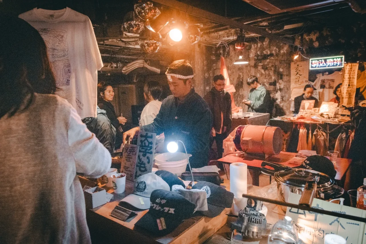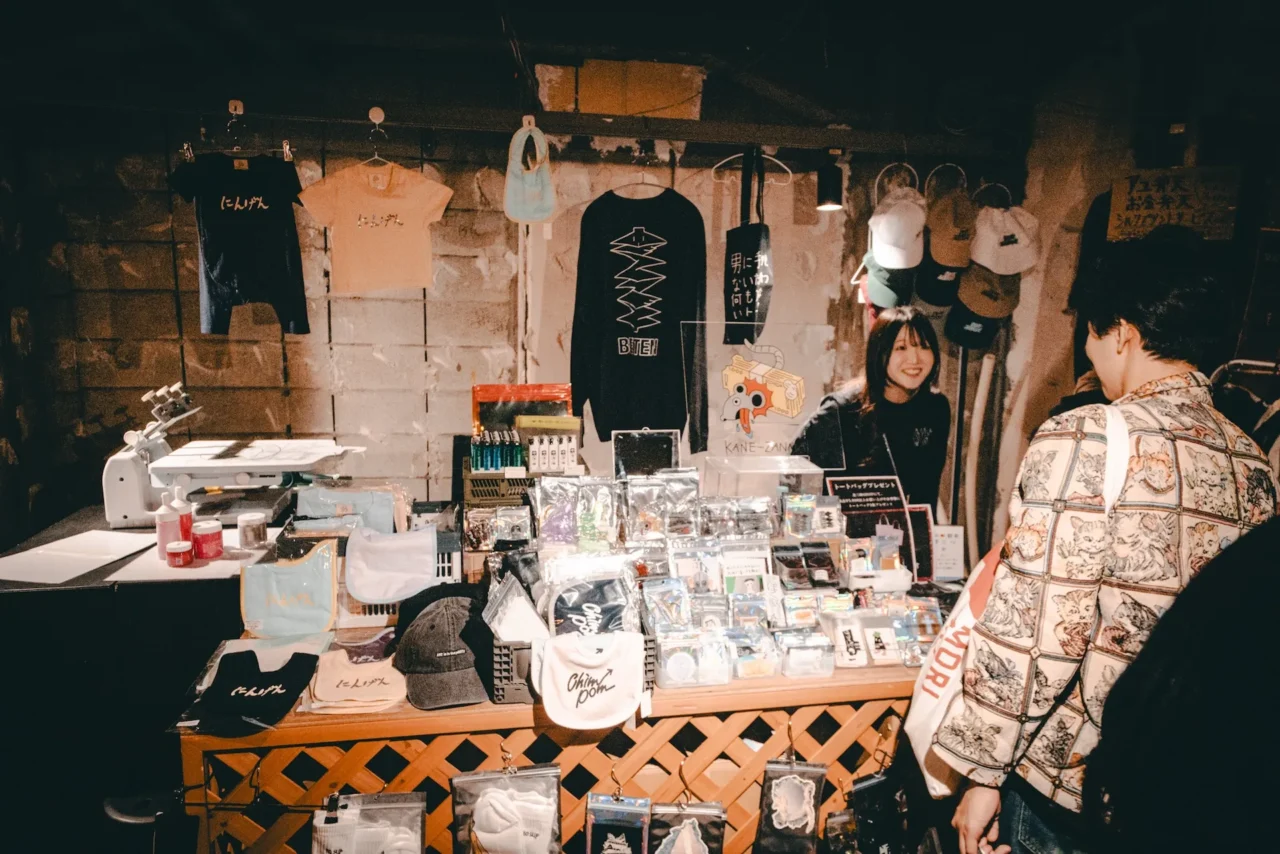 池田:私は前回の『BENTEN』からあった、王城ビル1階の「アー横」を担当しました。アーティストやコミュニティが、展示ではなく出店という形で飲食や物販を行う場所です。今年は来場者が訪れる時間帯によって見える景色と体験が変わるようにしたいと思っていたので、出店者を固定ではなく、6時間ごとに変わる設定にして、常に搬入と搬出を繰り返すような形にしていました。また、今年からは「アー横」内にステージを設けて常にパフォーマンスやライブ、ワークショップを行いました。3日間通して回し続けたおかげで、森美術館でやった『Chim↑Pom展:ハッピースプリング』の道のように、その場所自体が育っていく感覚があったのが面白いなと思っていて。作品やオブジェクトではない形式で場が立ち上がることや、そうした表現形式をキュレーションできることに可能性を感じました。