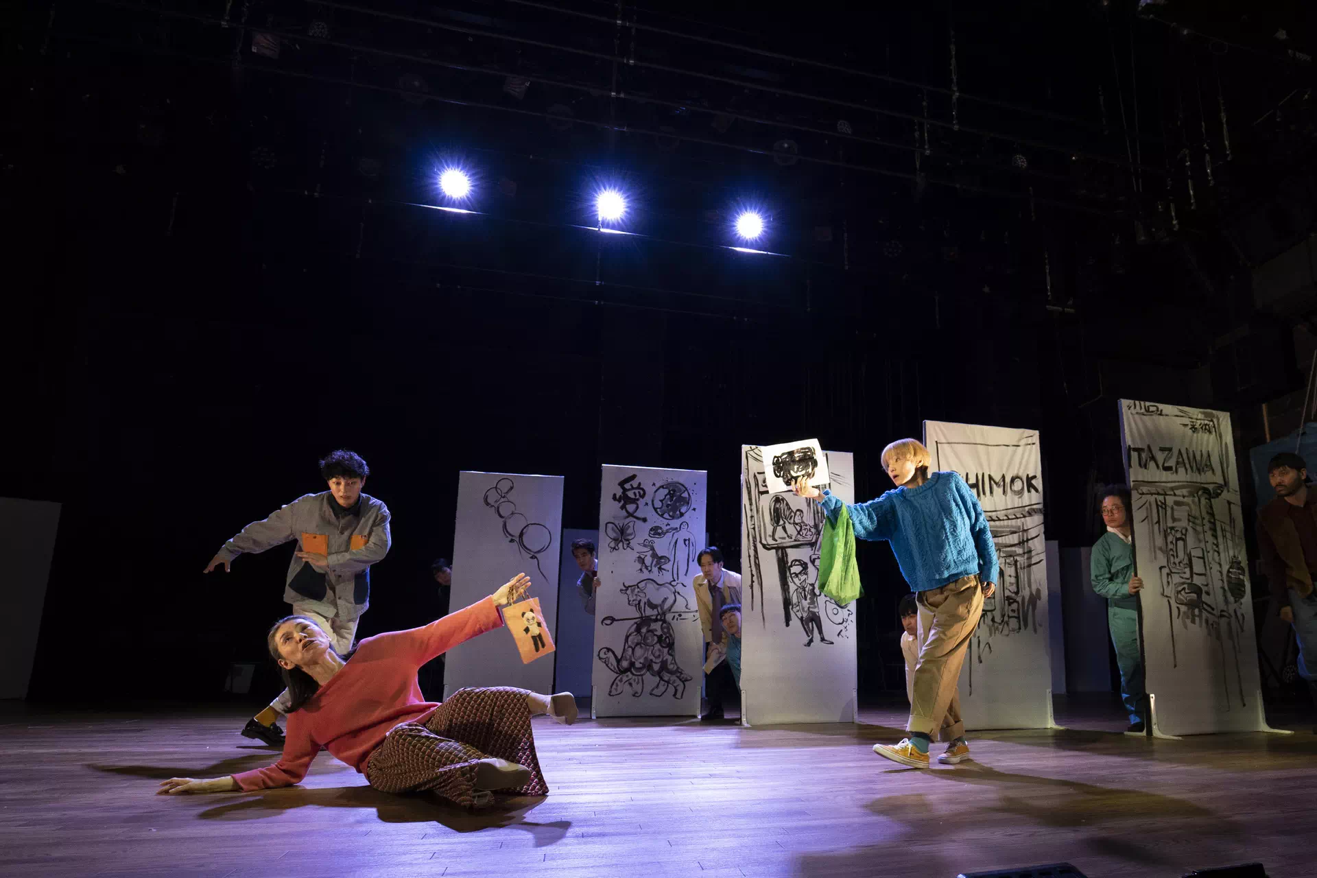 川添:劇中、画家の下田昌克さんのライブペインティングによって白い大きなパネルに絵を描いていくシーンがあるんですが、それによってだんだんと下北沢の街の様子が立ち上がり、登場人物一人ひとりのストーリーが見えていく……というような構成。「本多劇場でやる」「下北沢でやる」あるいは、想像力で素舞台に「見えないものが見えてくる」ことを感じる公演になっていました。物語は全く新しいものなのに、彼らの過去作もさりげなくコラージュされていたし、感慨深い公演でしたね。