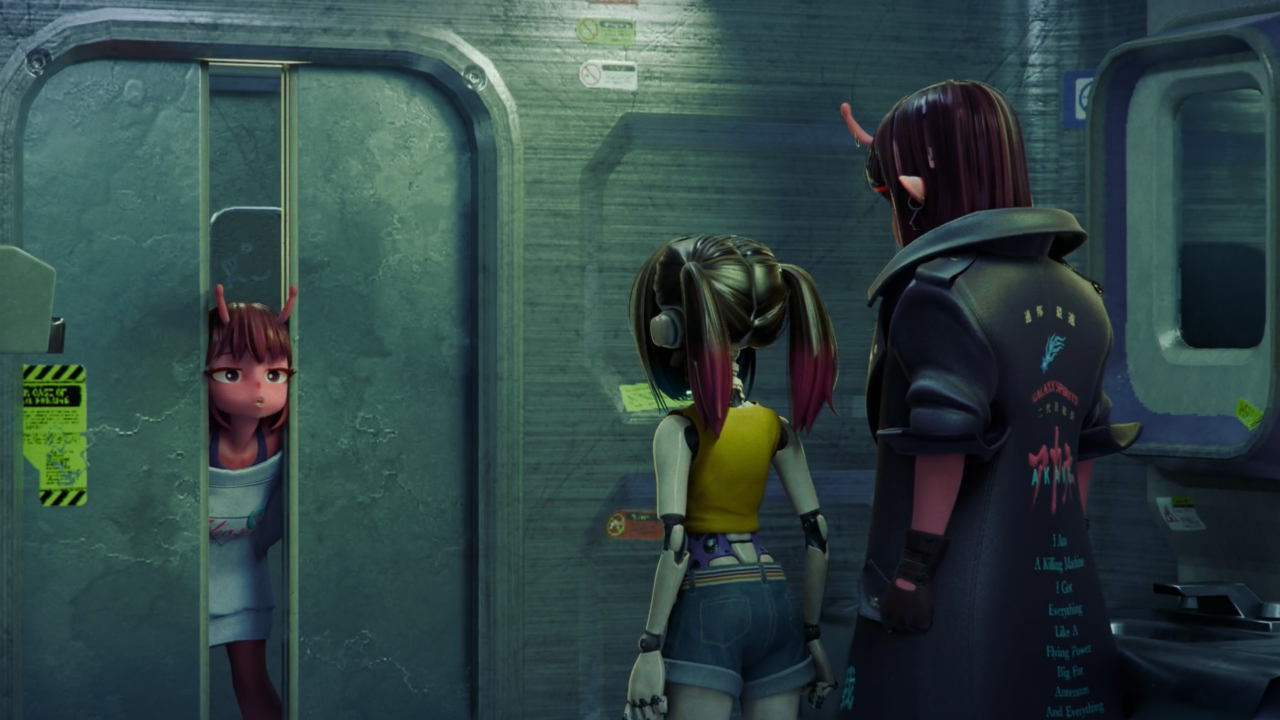 だから、たとえば『銀河特急 ミルキー☆サブウェイ』に出てくるキャラクターであれば、体がサイボーグや強化人間といった非人間的な部分もありつつ、服装は割とリアルクローズ寄りのデザインにする。世界観にしても、宇宙空間というシュールな要素はありつつ、乗り物や建て物のデザインにはレトロな、現実でも見かけるような要素が残っている。そんなバランスで、全体をデザインするようにしています。