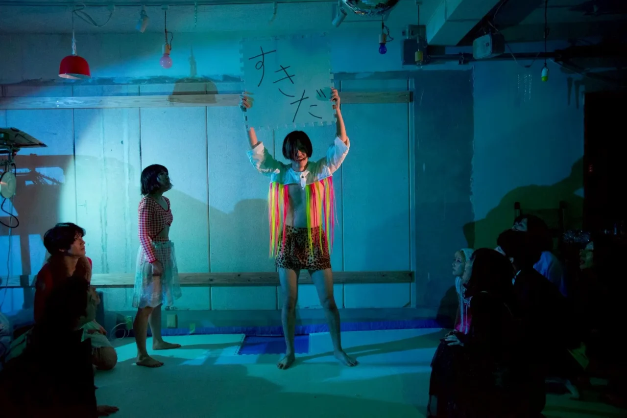 まるで、高校の文化祭に迷い込んでしまったかのよう。舞台の飾り付けは、舞台美術というよりもホームパーティのような趣です。ほとんど手作りといっていいような雑然とした空間には、ただただ、圧倒的なエネルギーしかありません。そもそも、開演時間が近づくにつれて埋まっていく客席は満席の様子。呼び込みをしたところで、どうやってこれ以上観客を詰め込めるのか……?