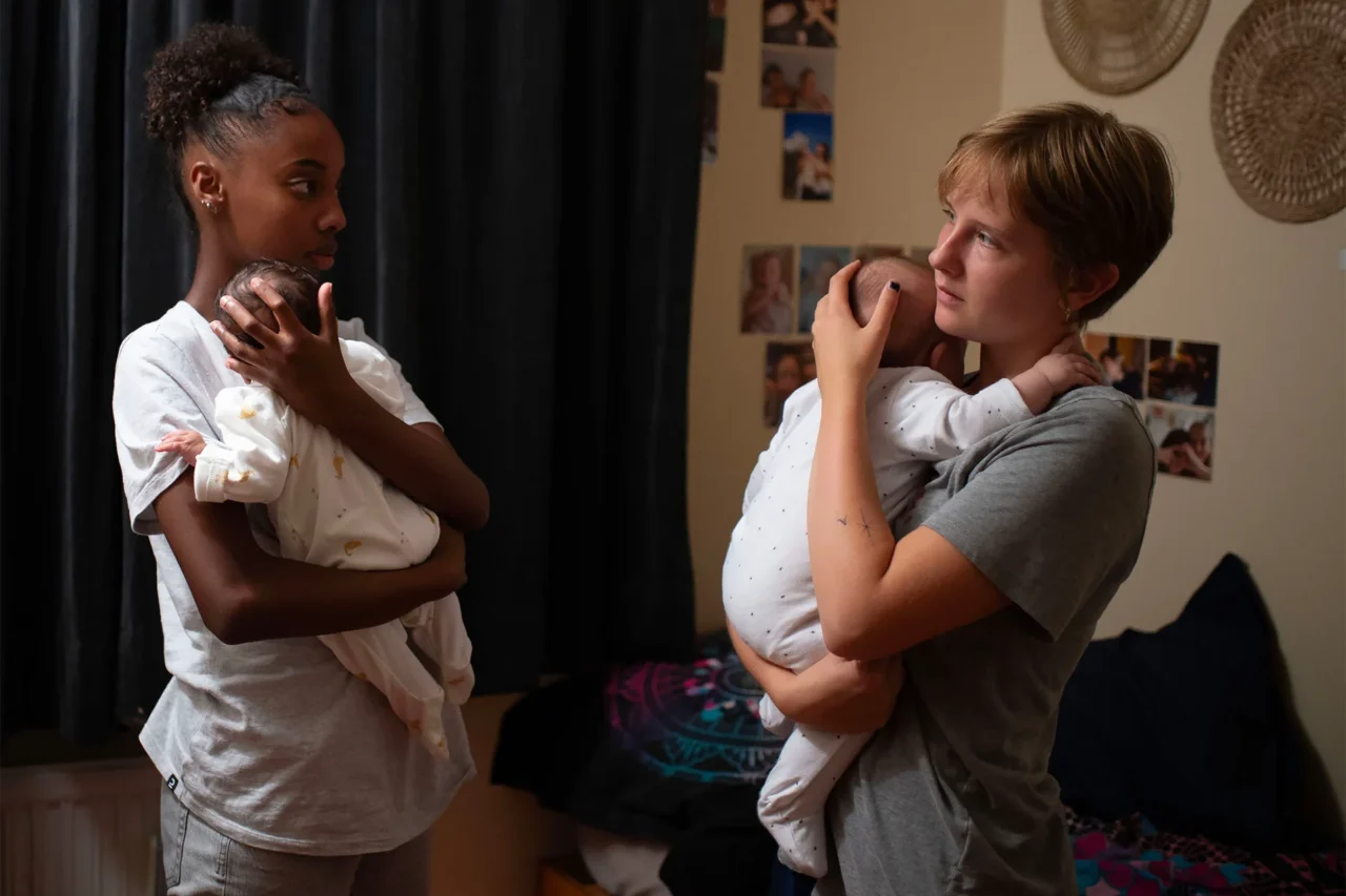 『そして彼女たちは』は、上記のようなスタイルを踏襲しながらも、過去作とは大きく変化している。本作は、母子支援施設で暮らす少女たちの再出発を描いた、ダルデンヌ兄弟にとって初の群像劇だからだ。1人ないし2人に焦点を当ててきたこれまでの代表作とは異なり、この映画では5人を主人公にし、若くして母親になった少女たちそれぞれの苦悩と決断を追いかける。