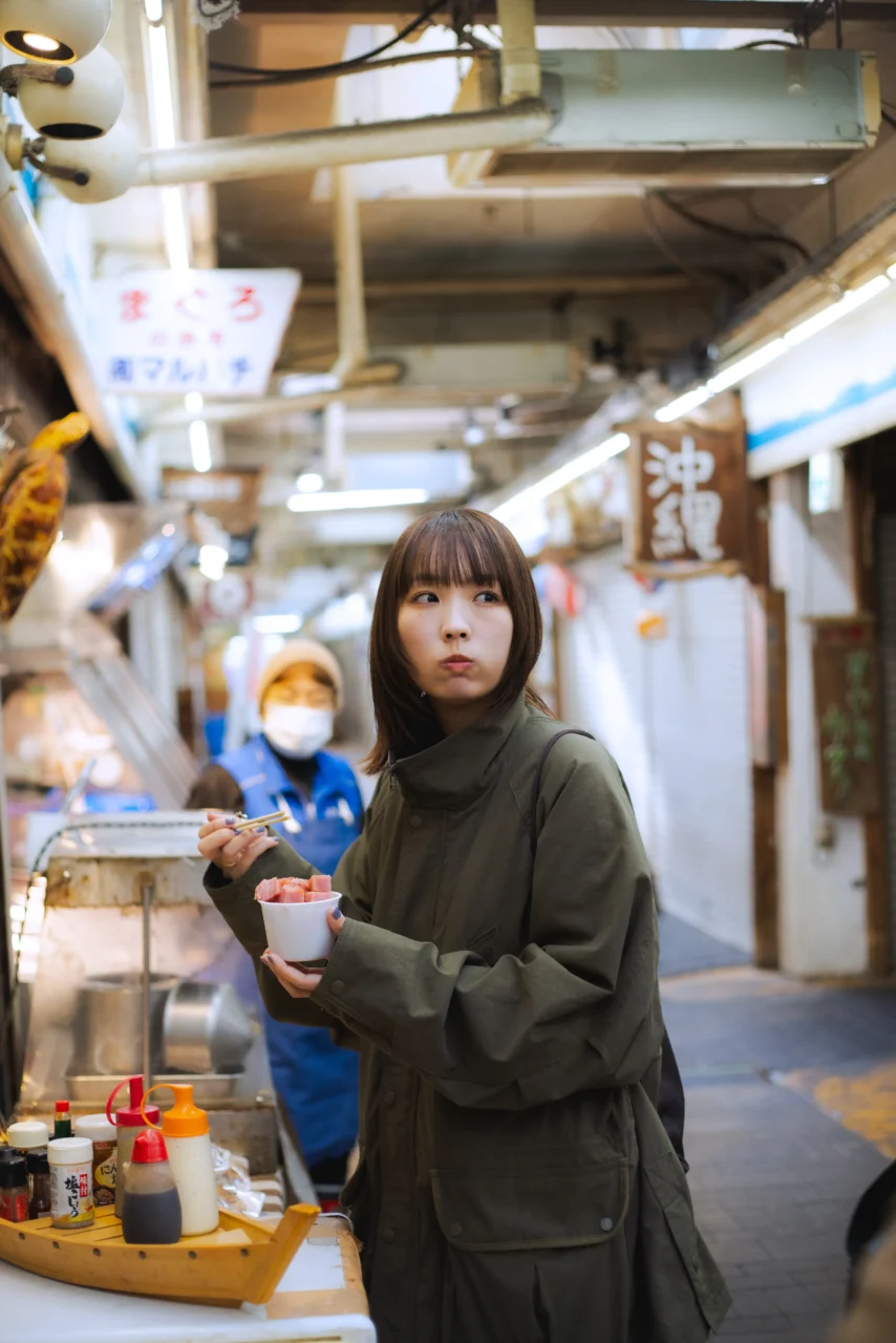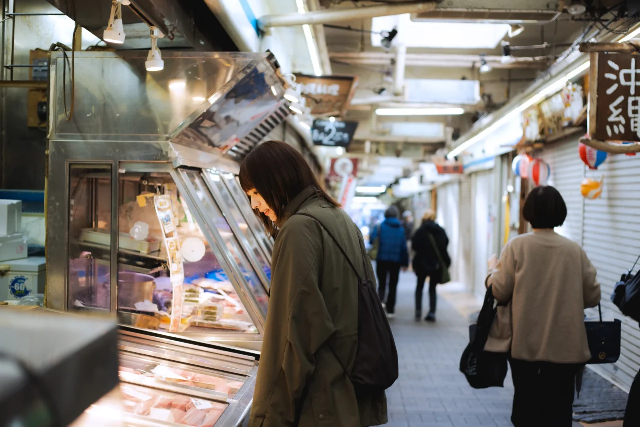 行列のできる小籠包店や、沖縄料理やタイ料理などの飲食店、アメリカントイを扱うお店、生活雑貨のお店など、さまざまな店舗が全長80mのコンパクトな商店街にぎゅっと並ぶ。「まぐろのお店 マルハチ」には、一口大にカットされたマグロの食べ歩きができる「マグロカップ」なども。