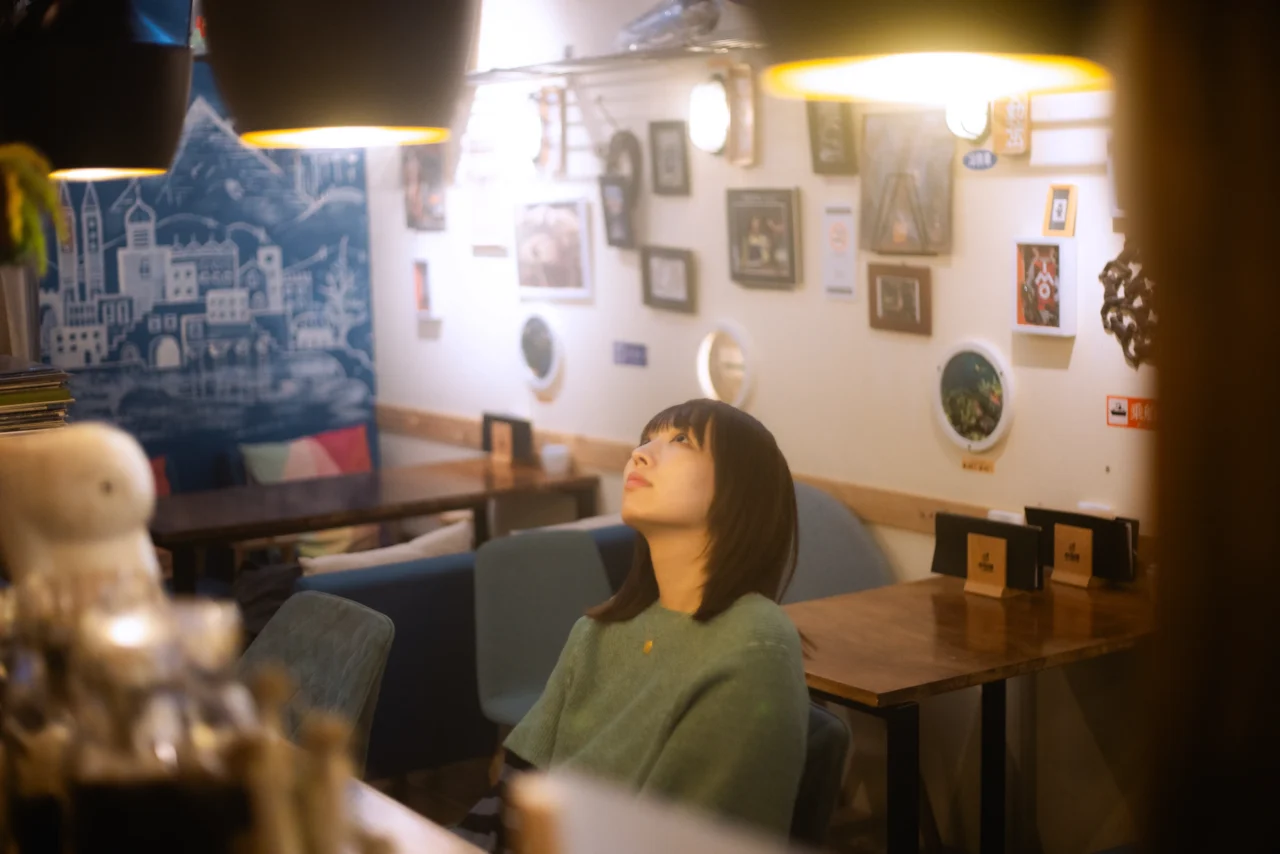 マスターが旅をイメージしてつくり上げたという店内の壁面には世界地図がペイントされ、飛行機の窓を模した装飾などが目を引く。
